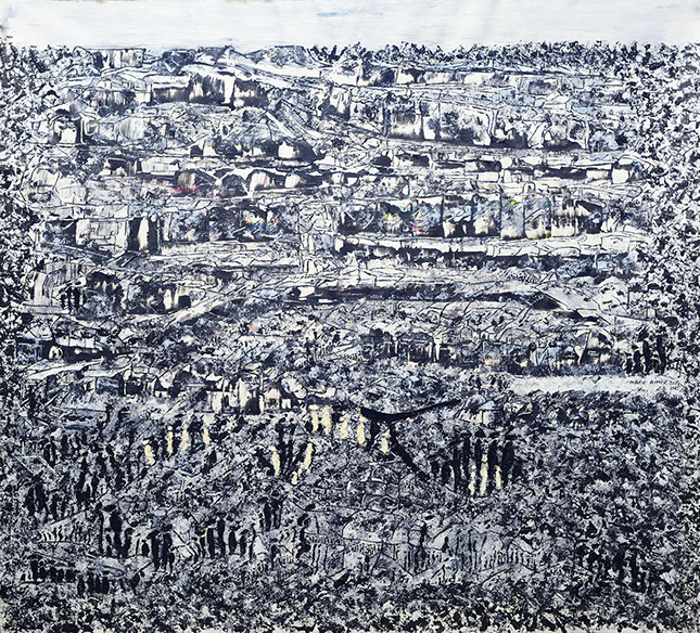 Exode, 2015, mixte et encre sur toile,