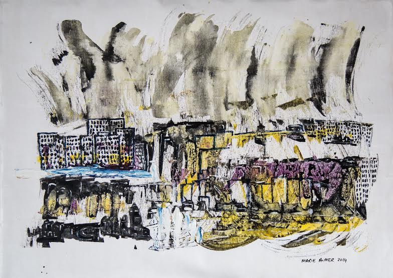 Les âmes sont en ville, 2014, huile et encre sur toile,