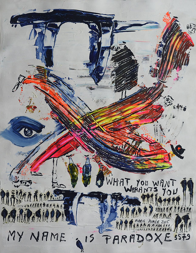 Paradoxe, 2015, mixte et encre sur toile,