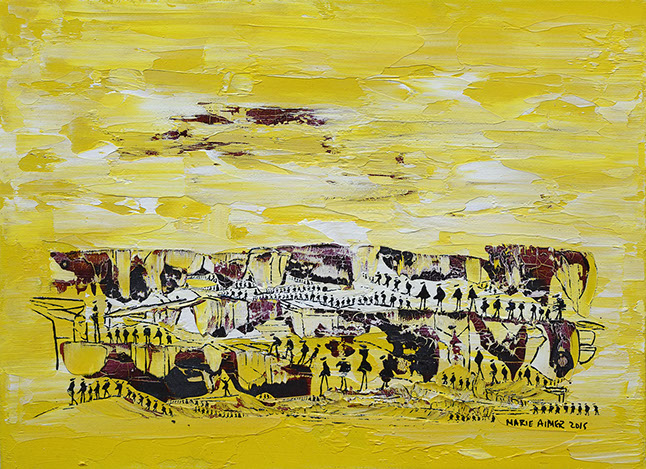 Solaire, 2015, huile et encre sur carton entoilé,